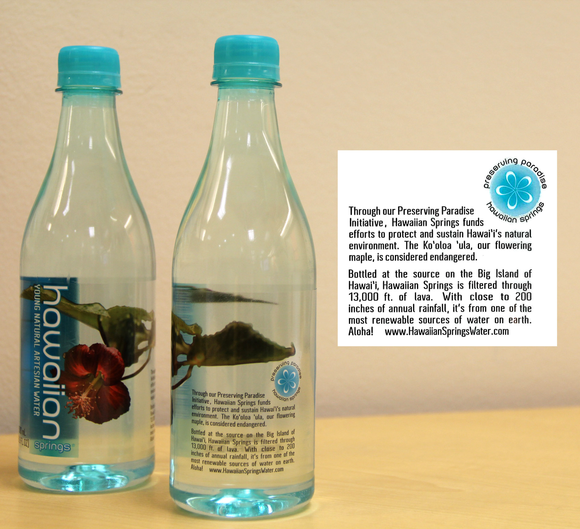 “We have always strived to conduct our business in an environmentally responsible way—our water is drawn from a highly renewable source and we use local materials wherever possible. Preserving Paradise is a way to give special focus to conserving Hawaii’s threatened species,” says Rick Hadley, Chairman and CEO of Hawaiian Springs. “By investing in new label designs that call attention to Hawaii’s amazing biodiversity, we hope the consumers will join us in safeguarding the natural splendor of the Islands.”