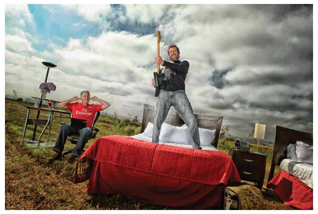 Here’s more introversion: search for Greg Koch on Google, and you find hundreds of on-camera interviews, speeches to aspiring entrepreneurs, and a keynote presentation to more than 1700 brewers at the 2009 Craft Brewers Conference. You’ll find him walking across the stage to receive an Ernst & Young Entrepreneur of the Year award. You’ll find him dragging his comrades-in-arms together to produce the much-viewed “I am a Craft Brewer” video. You’ll find him promoting his history of Stone Brewery, The Craft of Stone Brewing Co., by actually waving oversized signs on a busy street corner in San Diego. You’ll find him on the cover of this magazine, downing a beer where Stone has broken ground for a hotel.