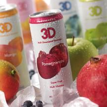 3D is an all-natural, lower-in-calorie beverage that combines premium white tea, super fruit and essential vitamins in a sleek can. Naturally sweetened with pure cane sugar and agave, the beverage has no more sugar than a small apple.