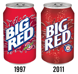 The new packaging graphics started rolling out nationally this week on Big Red, Diet Big Red and Big Blue across all package sizes. Other flavors (i.e. Big Pineapple, Big Peach, Big Orange) will transition later this year.
