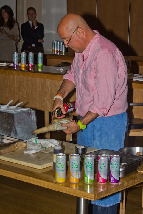 To celebrate the launch of CASCAL in new 12 oz. aluminum cans, Andrew Zimmern, host of the popular television show “Bizarre Foods” and a CASCAL enthusiast, hosted an afternoon of gourmet soda paired with exotic foods at CUT Beverly Hills. In a live demonstration, Zimmern prepared a variety of small food plates, including croque-madames with fried quail egg as well as geoduck clams served as an amuse bouche. Each dish was accompanied by CASCAL fermented sodas. Included below are several photos from the event.