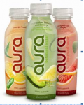 Aura, a stevia-sweetened “botanical” water that lies somewhere at the junction of Ayala and Adina, will debut in three flavors: Cucumber Lemon Rosemary, Grapefruit Sage and Orange Basil, with each bottle boasting what the marketer calls “an entire serving of fruit.” Note that the botanical element comes with the pairing of an herb with a fruit in each variety. The Grapefruit Sage carries about 90 calories of juice in a 16 oz. bottle, along with heavy vitamin C and potassium doses.