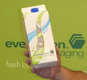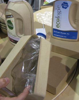 Aiming to buck the transparency trend, however, are the folks at Ecologic Brands. Their Ecologic molded cardboard bottles use a #4 LDPE recyclable bag inside to preserve contents and a 100 percent recycled cardboard and newspaper outer shell which can be recycled seven more times. It is also compostable. Already used by eco-friendly consumer product manufacturer, Seventh Generation, for its laundry detergents, the package has been adopted by several dairy manufacturers on the West Coast.