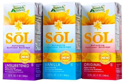 SoL™ Sunflower Beverage debuted in the spring of 2011. A delicious new addition to the functional beverage category, SoL™ is made from wholesome sunflower seeds grown on American family farms. Vegan and naturally free of the eight most common food allergens – which include soy, dairy, wheat, and tree nuts – SoL™ provides an excellent source of Vitamin E, Folic Acid, Calcium and Vitamin D. Each 8 oz. serving provides 50% of the recommended daily allowance for Vitamin E, 30% for Calcium, 25% for Vitamin D, and 20% for Folic Acid.