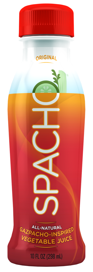 Spacho, dubbed by its founders as “the next generation veggie juice” and a solid meal replacement, is made of tomato, cucumber, peppers, salt, cumin, extra virgin olive oil, sherry wine vinegar, garlic and onion. High in potassium, fiber and lycopene, the recipe is inspired by Andalusian gazpacho and has a similar taste to the popular soup.