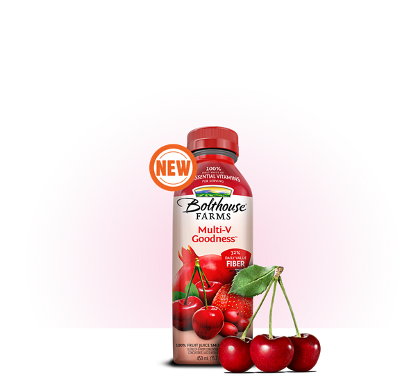 With 100% daily value of 12 essential vitamins, Bolthouse Farms Multi-V Goodness Smoothie stands out from the crowd with a grab-and-go cherry-flavored smoothie that contains many of the nutrients you would get from a multi-vitamin. Each serving also packs in 8 grams of fiber and a host of beneficial nutrients such as folate along with 100% daily value of vitamins A and C, D, E, K, B6 and B12, as well as Thiamin, Riboflavin, Niacin and Biotin (based on a 2,000 calorie diet). The powerhouse blend of red fruits and berries includes cherries, strawberries, raspberries and pomegranates.