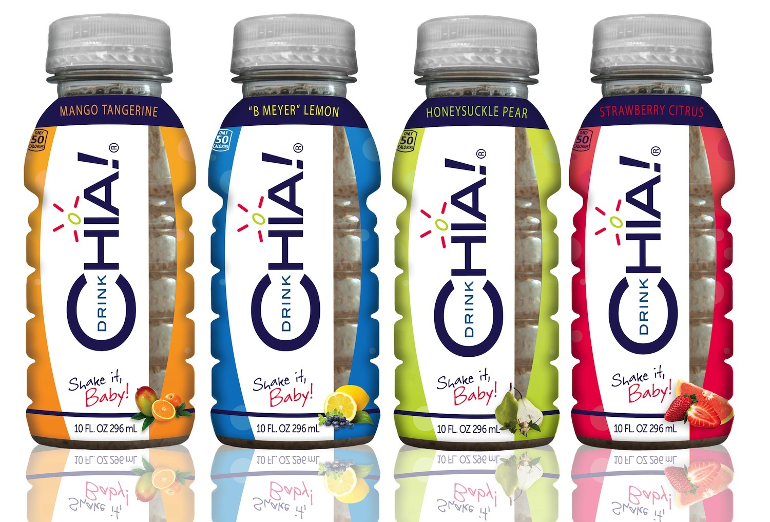 Drink Chia, which is available Strawberry Citrus, Honeysuckle Pear, Mango Tangerine and Lemon Blueberry, claims to be the chia drink with the lowest calories (50 per serving) and sugar (5 grams) on the market. The chia seeds give the beverage 1,100 mg of omega-3 essential fatty acids and doses of fiber, antioxidants and B-complex vitamins.