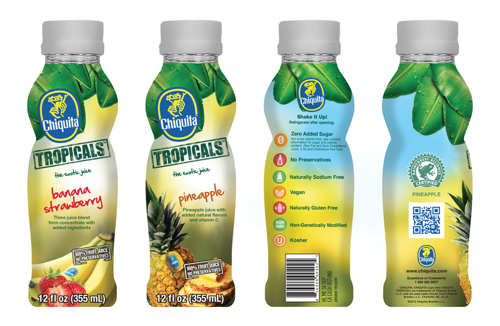 The CHIQUITA TROPICALS(TM) line has launched its first four 100% fruit juice products made from tropical fruits: Banana Strawberry, Mango, Pineapple, and Passion Fruit.