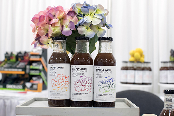 Simply Auri is a line of drinks made with Auricularia Auricula, also known as Wood Ear Mushroom, and organic fruit juice. The drinks contain 110 calories per 12 oz. bottle and are a source of plant-based collagen, fiber, iron and other nutrients.