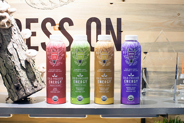 Cold-pressed juice brand Garden of Flavor has revamped the packaging for its line of energy drinks, which are made with guayusa. The line includes a new Pear Reishi variety.