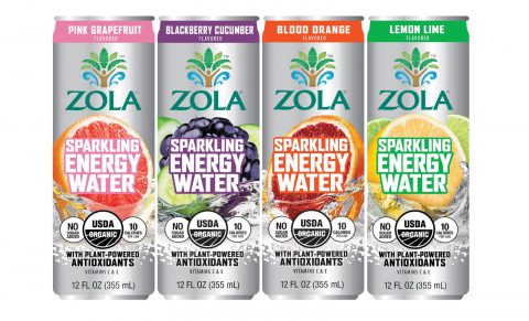 Zola’s Organic Sparkling Energy Waters are launching with four naturally refreshing flavors: Pink Grapefruit, Blackberry Cucumber, Blood Orange, and Lemon Lime –available June 2018 with an SRP of $2.49 per 12 fl oz sleek aluminum can.