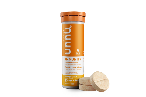 Nuun Immunity is available in two flavors: Orange Citrus and Blueberry Tangerine and is sold in a 10-tablet tube for $10.00. The line is Non-GMO Project Verified, certified vegan and gluten free, and certified Informed Choice – Safe for Sport. Nuun Immunity is available in Canada at Whole Foods Market, Mountain Equipment Co-Op and London Drugs. It is also available online at NuunCanada.com and Amazon.