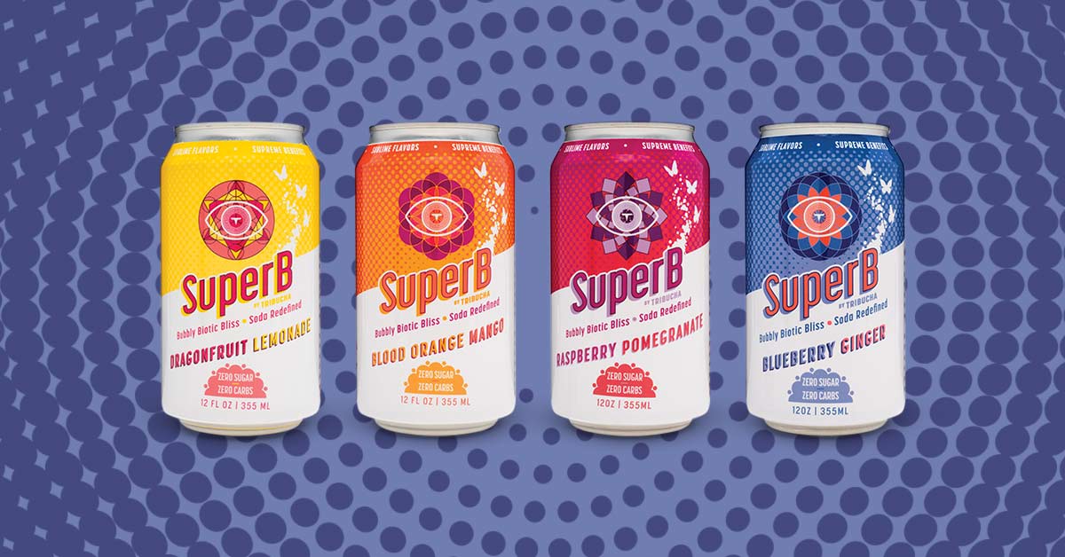 Kombucha maker Tribucha debuted its new SuperB functional soda line in Blood Orange Mango, Dragonfruit Lemonade, Blueberry Ginger and Raspberry Pomegranate flavors. The shelf-stable sodas contain a blend of probiotics and postbiotics and have no calories, sugar or carbs. The SuperB line is available at select Publix locations for $2.79 per 12 oz. can.