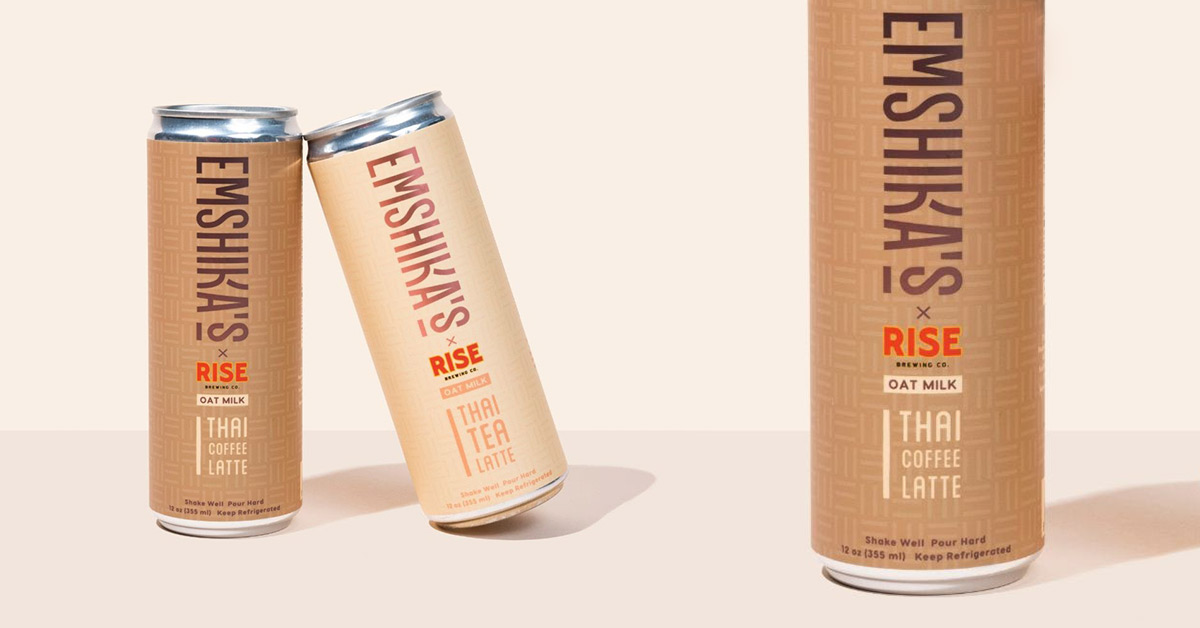 Organic nitro cold brew and oat milk maker Rise Brewing Co. and Thai iced tea and coffee company Emshika’s teamed up to launch two new oat milk-based products: a Thai Coffee Latte and a Thai Tea Latte. The new co-branded products are available online in a 6-pack of 12 oz. cans for $27.