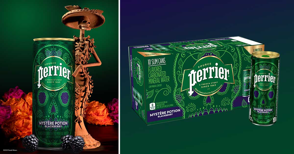 In celebration of Día de los Muertos, Perrier has introduced a limited-edition “Mystére Potion” blackberry flavor of its classic carbonated mineral water. The Día de los Muertos flavor is available in a 10-pack of 8.45 oz. cans for a suggested retail price of $6.89, exclusively at Target.
