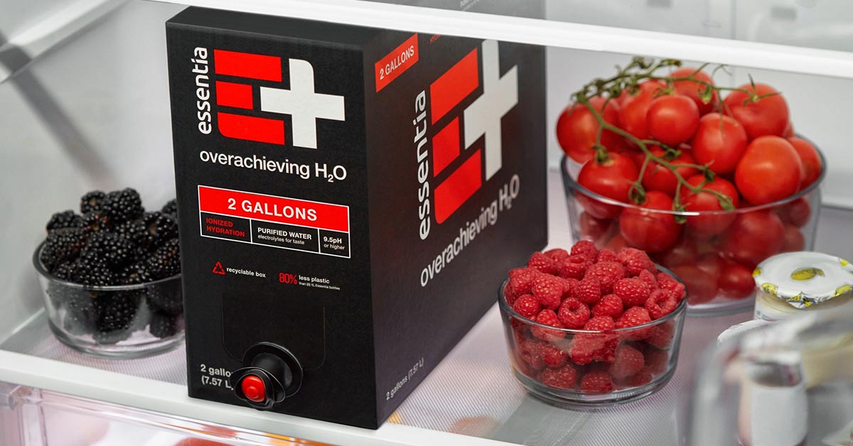 Alkaline water company Essentia introduced its first large format line extension with a two gallon box. The new format is intended to be a more sustainable alternative than single-use plastic bottles as the box is made with recycled corrugate and the internal bag uses 80% less plastic than the brand’s 1 L bottles. The boxes are available at CVS and Walmart nationwide for a suggested retail price of $16.99.