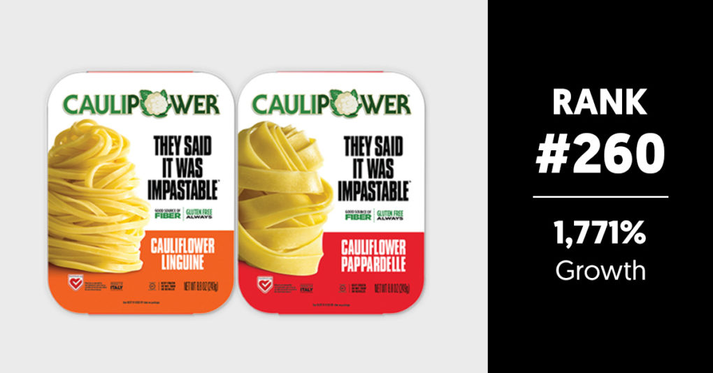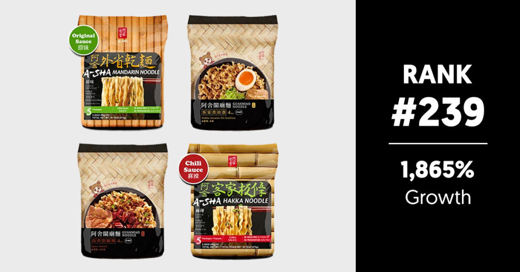 Better-for-you ramen brand A-Sha Foods is also celebrating its second year on the list, this time ranking in at number 239 with 1,865% growth. The Taiwan-based brand opened a headquarters in the U.S. in 2015 and now distributes its products nationwide.