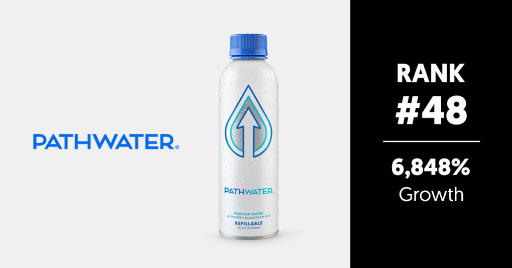 Aluminum-bottled water brand PathWater had a high growth-year after launching limited-edition bottles and expanding its portfolio with a new sparkling line. The company ranked 48 on the list and generated $12.7 million in revenue last year.
