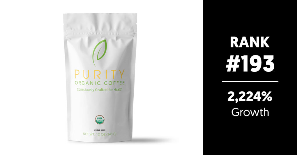 South Carolina-based Purity Coffee ranked 193 on the list with its D2C platform delivering organic whole bean, pods and single-serve bags of coffee nationwide.