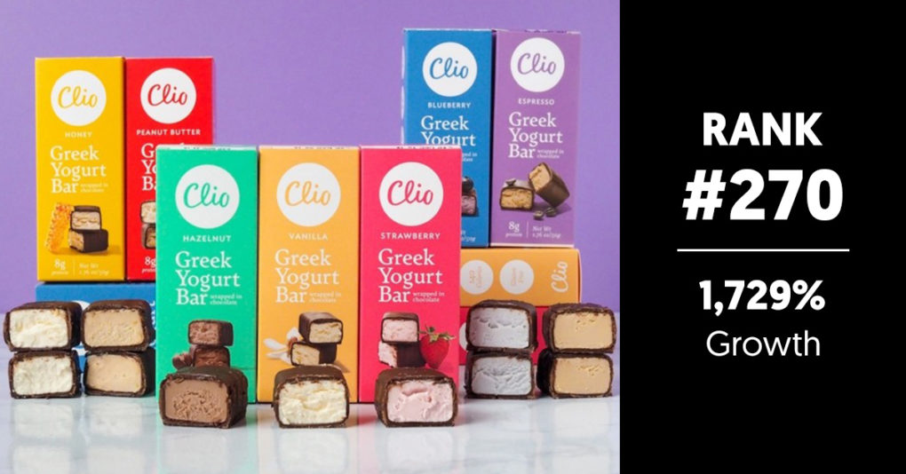 Since closing an $8 million funding found last year, Clio Snacks grew 1,729% and launched a new line of Greek yogurt minis. The company suffered a setback in June after it issued a voluntary recall of 21 SKUs due to metal fragments in the chocolate coating.