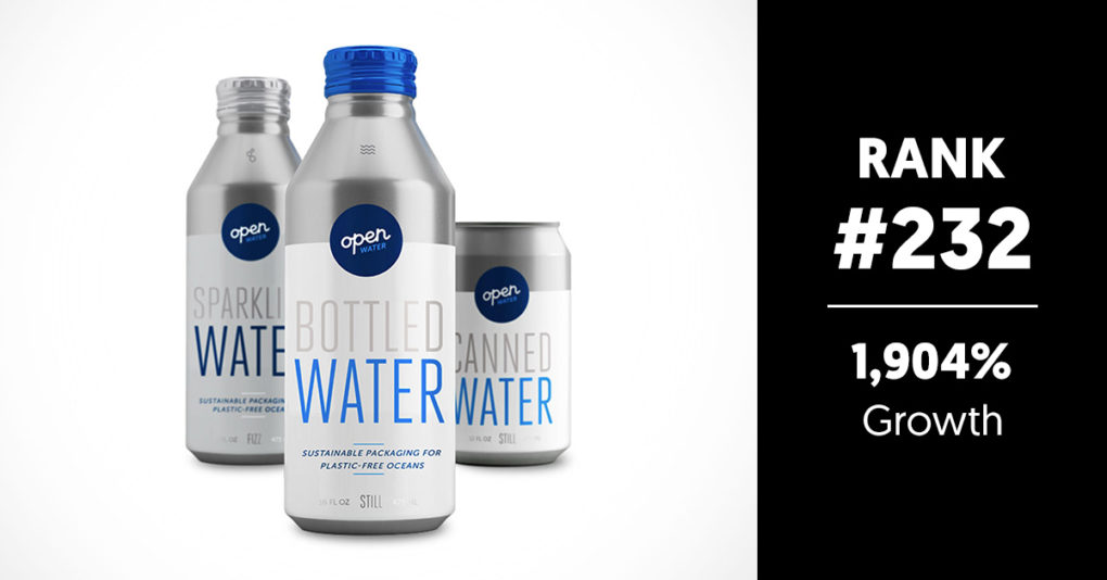 Ranking 232 on the list is canned water brand Open Water. Since its 2018 rebrand from Green Sheep Water, the company has ramped up its sustainability focus and became the first bottled water company to earn itself a climate neutral certification.