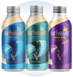 Surfwater touts a clean and crisp, perfectly pH balanced, electrolyte enhanced bottle of water that is made from 100% recyclable aluminum.
