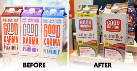 Alt-dairy brand Good Karma is renaming its Plant-Milk line “Oatmilk +” as part of a wider packaging change.
