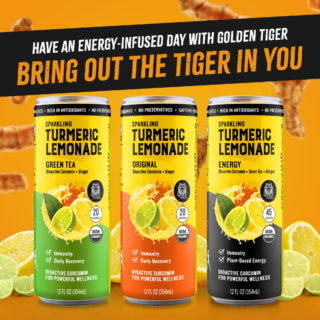 Golden Tiger’s tagline is Recover, Revitalize, and Roar – and it has two lines of product that helps consumers do exactly that. ITs flat lemonades are geared toward Recovery, while its Sparkling line is extremely revitalizing with the formulation consumers know and love! There’s really no other drink with Bioactive Curcumin on the market that tastes this good and has unlocked the pharmacological, anti-inflammatory and antioxidant benefits of Curcumin.