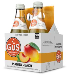 NEW YORK, N.Y.— Utmost Brands, Inc., maker of GuS – Grown-up Soda introduces its new Mango Peach flavor at the Summer Fancy Food Show in New York City. Made with ripe mango puree, sweet peach juice, and a touch of cane sugar, the new flavor delivers a full-bodied tropical taste sensation in a craft soda. With only 90 calories per 12oz. bottle, it clocks in at 40% fewer calories and carbs than a typical 150 calorie soda.