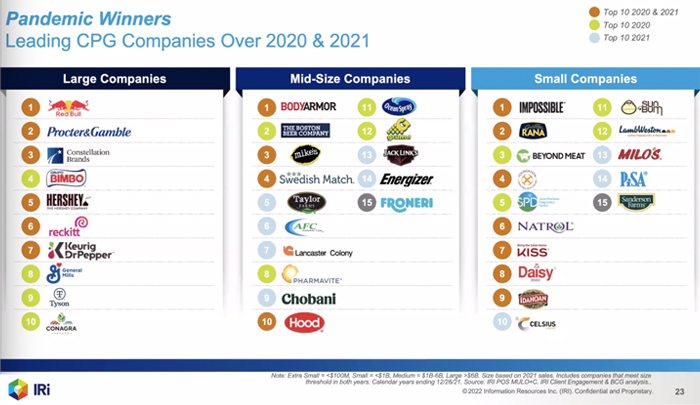 Looking ahead to future supply chain challenges, IRI analysts noted that flexibility will be key for both manufacturers and retailers, while CPG brands will need to lean heavily on consumer shopping data and analytics to be successful amidst high inflationary pressure.