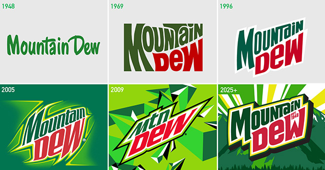 The soda brand has rotated through multiple visual identities throughout the years, most recently in 2009. At that time, Mountain Dew, like many beverage brands, adopted a modern look with neon colors that it now recognizes “probably [strayed] too far away from its origin, legacy and authenticity.”