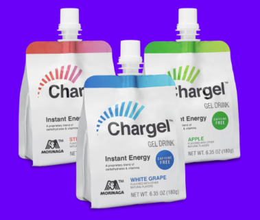 Chargel delivers immediate energy from an exclusive blend of carbohydrates, fruit juice, natural flavors, and five essential B vitamins. Available in three crushable flavors, White Grape, Apple, and Strawberry, the unique gels help provide an instant source of energy, without the caffeine crash. Each serving of Chargel packs 20% of the daily value of niacin, thiamin, riboflavin, B12 and B6, without any caffeine, artificial sweeteners, or high fructose corn syrup. The pocket-sized, on-the-go pouches, were thoughtfully developed for convenience and fast intake before activity and feature a built-in spout for quick delivery. All Chargel Gel Drinks are also plant based, gluten free, and free of the top nine allergens.