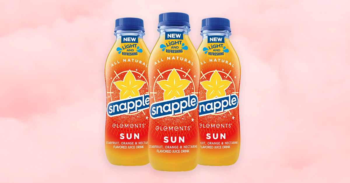 Just in time for the solar eclipse on Monday, Snapple has launched Snapple Elements Sun. The new offering features starfruit, orange and nectarine flavors and comes in a 15.9 oz. bottle. For more information, visit snapple.com.