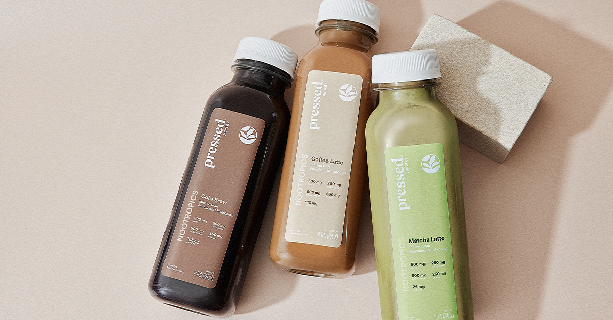 Pressed Juicery has unveiled its inaugural Nootropics collection, a range of RTD functional beverages designed to “redefine the morning coffee ritual.” The collection comprises Cold Brew ($6.95), Coffee Latte ($6.95, and Matcha Latte ($6.95), all of which are infused with reishi, lion’s mane, chaga and cordyceps, as well as Morning Ritual 3-Packs. The Nootropics Coffees and Matcha individual collection and Morning Ritual 3-Packs are available in-store at all Pressed Juicery locations and online. For more information, visit pressed.com.