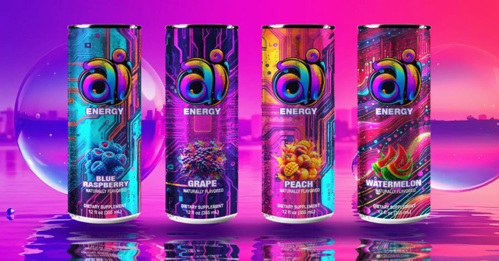 Under the parent company Energy IP Holdings, Ai Energy is set to launch by the end of the year in 12 oz. cans with initial flavors Blue Raspberry, Grape, Peach and Watermelon. Each can contains a 700mg “NeuroSync” supplements blend, including 200mg of caffeine, L-theanine, N-Acetyl L-Tyrosine, CDP Citicoline (for focus and memory), Mucuna Pruriens Powder and Huperzine-A.