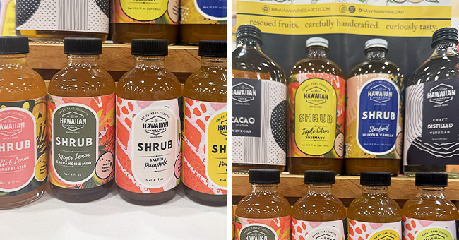 Hawaiian Vinegar and Spice Company sampled its lineup of upcycled shrubs with flavors ranging from Pineapple Mint and Basil Ginger to Star Fruit Lilikoi & Vanilla. The brand also produces vinegars made from a variety of native ingredients including Bananas and Cacao with its cofounder claiming he first created the products by accident in his home kitchen.