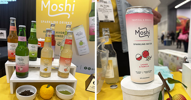 Asian inspired beverage brand Moshi is growing its lineup of sparkling waters, sampling a new Lychee Vanilla flavor at the show. Founder Alton But said the brand has been gaining traction after introducing the sparkling water line last year and will continue to experiment with duel-flavored formulations.