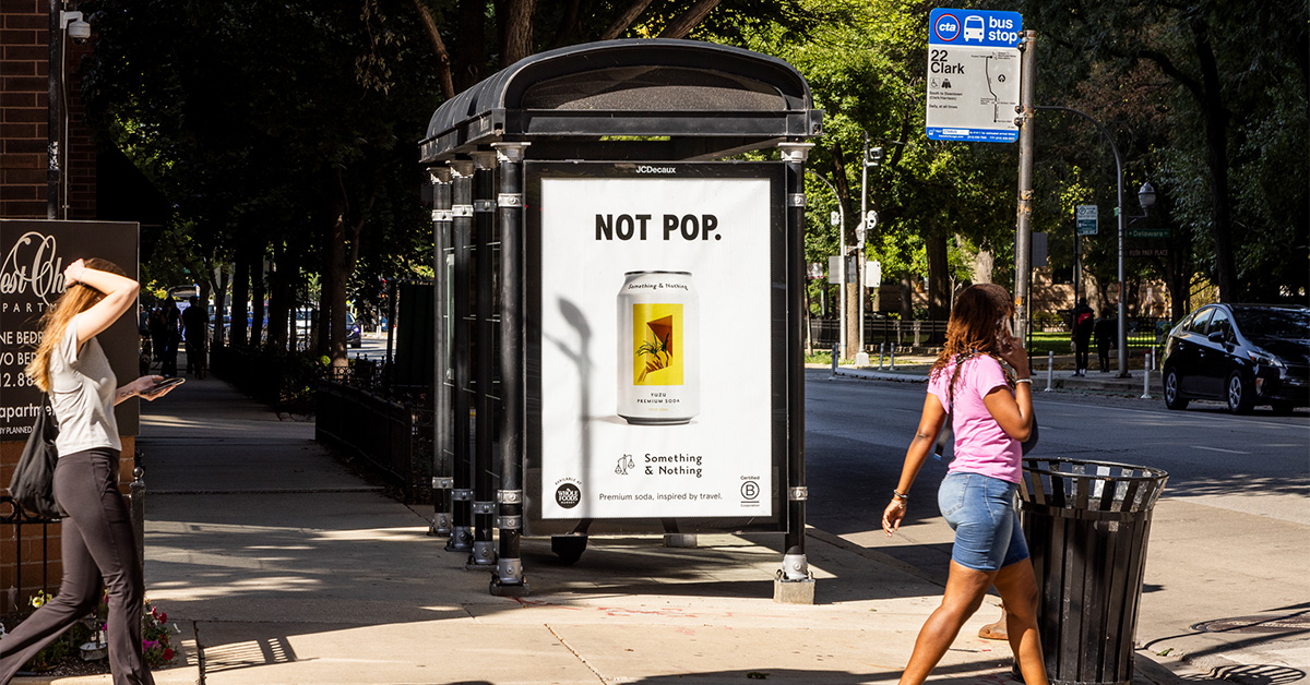 Inspired by Apple’s 1998 “Sorry, no beige” ad, the Not Pop posters feature a clean, modern aesthetic with Something & Nothing product photography accompanied by the tagline, “Premium soda, inspired by travel.” The campaign will roll out to bus stops and neighborhoods across Chicago that are in proximity to Whole Foods Market stores, where consumers can purchase the brand’s products.