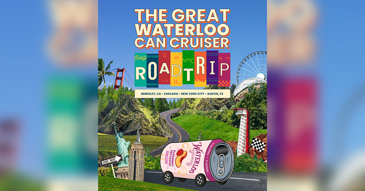 Waterloo Sparkling Water is embarking on a roadtrip, the Great Waterloo Can Cruiser Road Trip to be exact. The trip includes pit stops across the country – Berkeley, Ca.; Chicago, Ill.; New York, N.Y. (x2); and Austin, Texas – and highlights the brand’s Raspberry Nectarine and Guava Berry flavors.