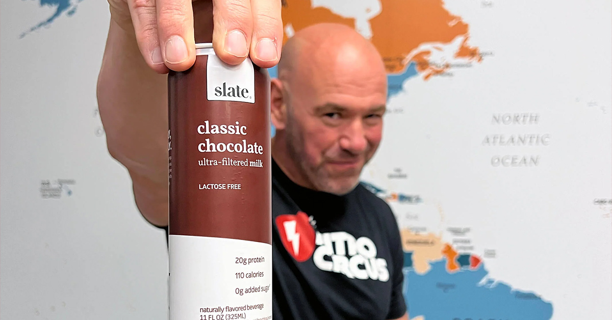 Hot on the heels of a $23 million funding round, high-protein chocolate milk and canned coffee brand Slate partnered with UFC president CEO Dana White to highlight its 100% plastic-neutral products.