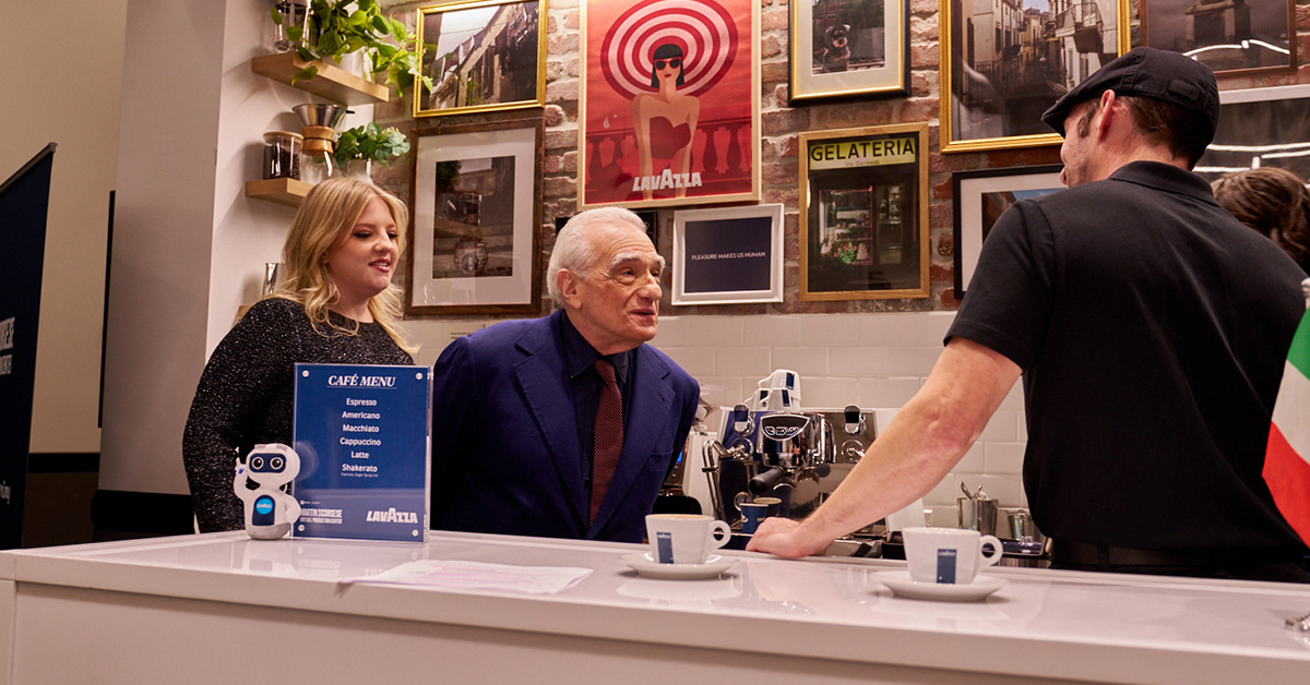 The collaboration kicked off with an evening hosted by Scorsese himself, welcoming guests to “celebrate the exciting union of cinematic and coffee excellence.” The cafe lounge is outfitted with Lavazza’s Flavia machines and its signature Dolcevita Classico espresso and coffee line.