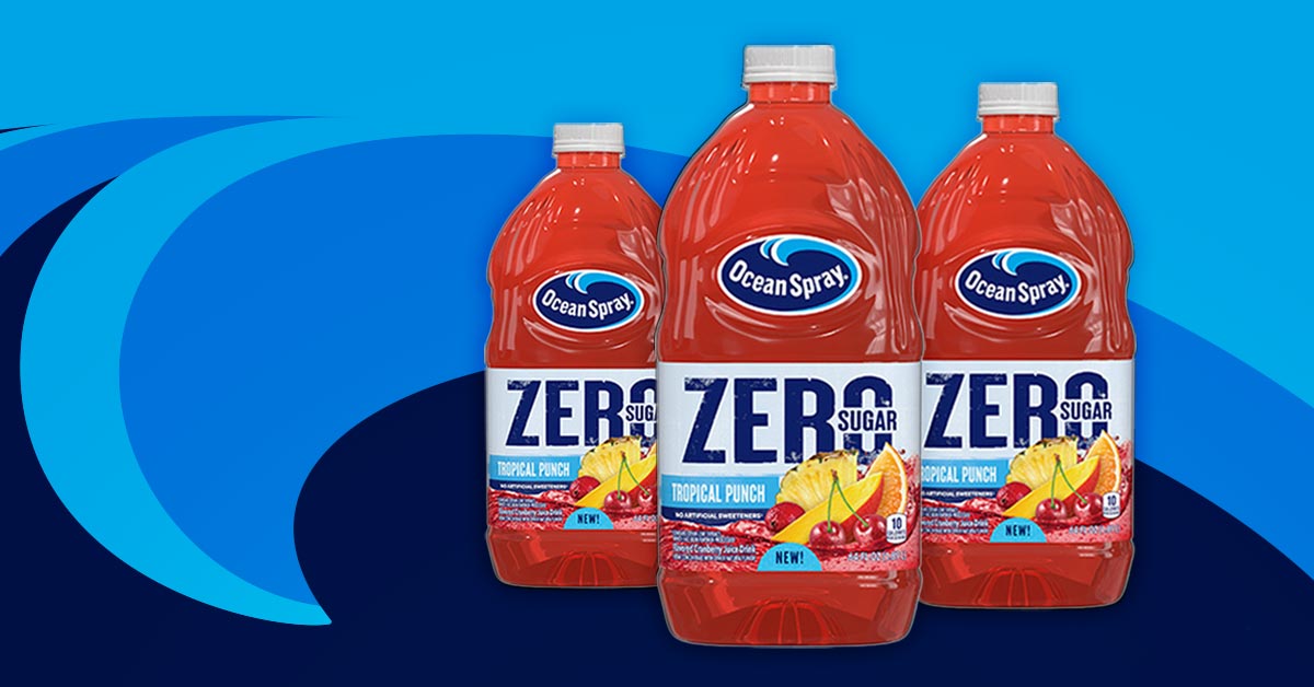 Farmer-owned cooperative Ocean Spray has grown its Zero Sugar line extension with the launch of Ocean Spray Zero Sugar Tropical Punch Juice Drink. Like the brand’s other Zero Sugar flavors, Cranberry and Mixed Berry, the new beverage is sweetened with stevia leaf extract. Ocean Spray Zero Sugar Tropical Punch Juice Drink is available nationwide on Amazon and Walmart.com with a SRP of $3-4 per 64 oz. bottle. For more information, visit oceanspray.com.