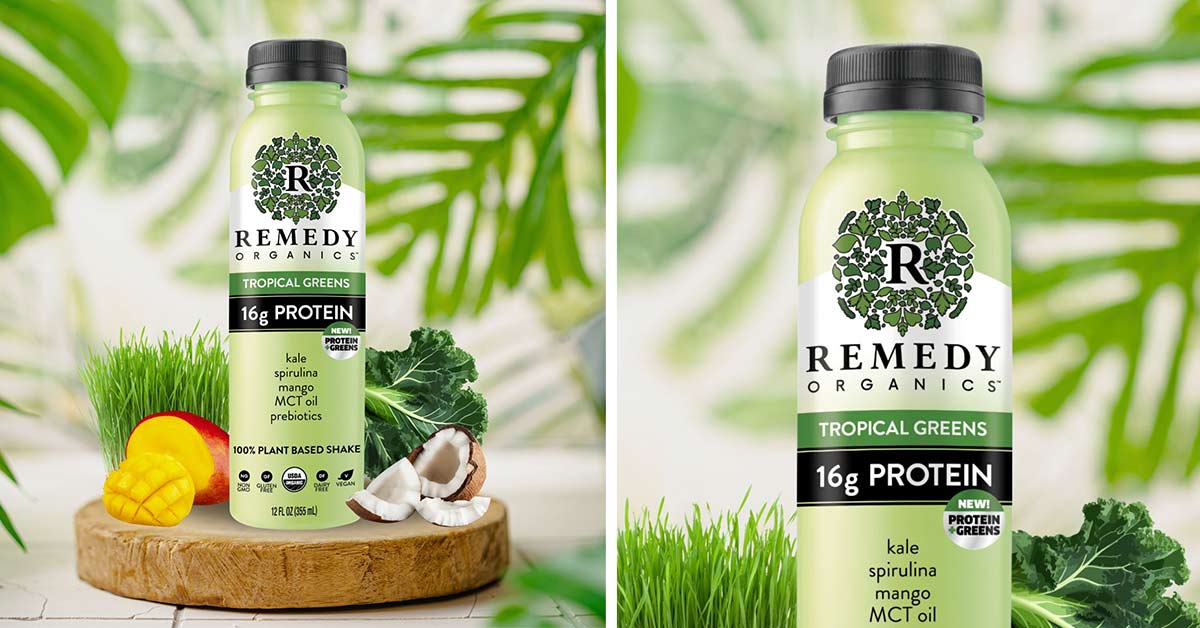 Remedy Organics has expanded its portfolio of functional wellness shakes with the debut of Tropical Greens Wellness Shake. Each 12 oz. bottle is crafted with 16 grams of plant-based protein, kale, spirulina, mango, MCT oil and prebiotics. The new beverage is available on the brand’s website for $69.99 per 12-pack and at Sprouts Farmers Market nationwide. For more information, visit remedyorganics.com.