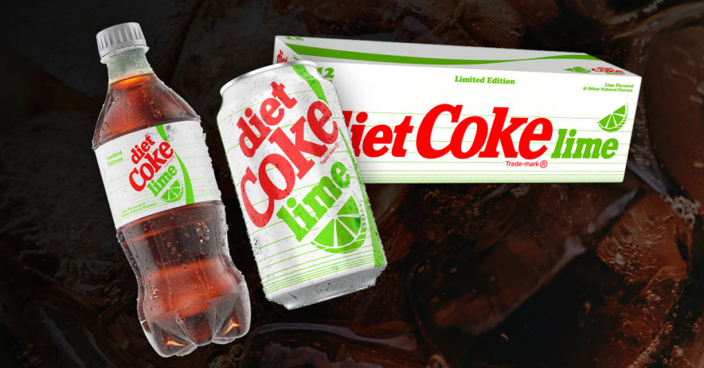 Diet Coke Lime is back. The flavored addition to the classic Diet Coke line was previously discontinued, but is now returning in multiple formats including cans and plastic bottles. For more information visit coca-cola.com.
