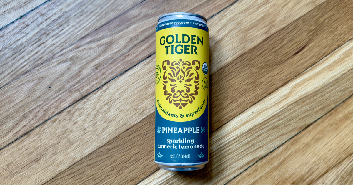 Golden Tiger’s Pineapple Sparkling Turmeric Lemonade is a USDA Organic functional beverage that combines pineapple, lemon, and turmeric in a lightly carbonated format. Packaged in a bold yellow and blue 12-ounce sleek can, the product emphasizes plant-based recovery, immunity, and superfoods while delivering only 20 calories and 4 grams of sugar per serving.