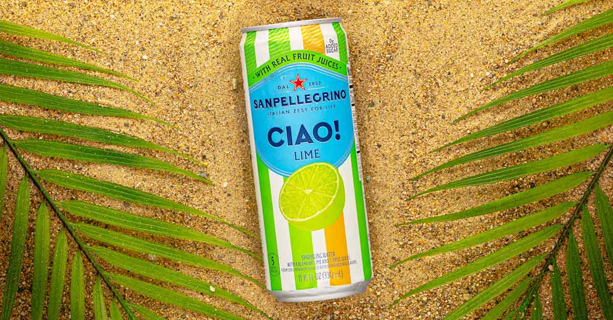 S.Pellegrino continues to diversify its product range, this time with CIAO!, a four-SKU line of fruit-flavored sparkling water in 12 oz slim cans made with juice (no added sugar) and a pinch of Sicilian sea salt.