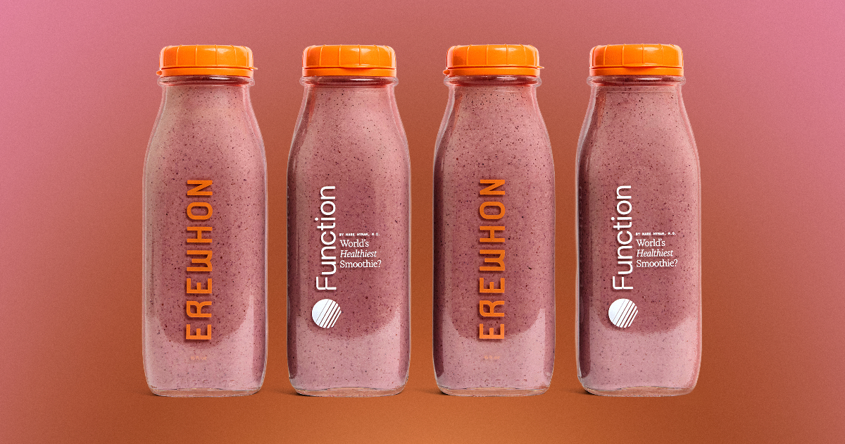 Erehwon has teamed with health startup Function for a year-long limited release of “The World’s Healthiest Smoothie,” a promotion that ties one of wellness CPG’s most influential names closer to the emerging segment of personalized health diagnostics.