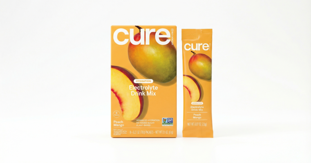 Powdered hydration brand Cure has a new tropical-themed flavor, Peach Mango. Like its other SKUs, Cure has zero added-sugar and is formulated with coconut water powder, pink Himalayan salt, lemon juice powder, and sweetened with stevia and monk fruit. The electrolyte drink mix comes in 8-, 14- and 28-count packages. For more information, visit curehydration.com.