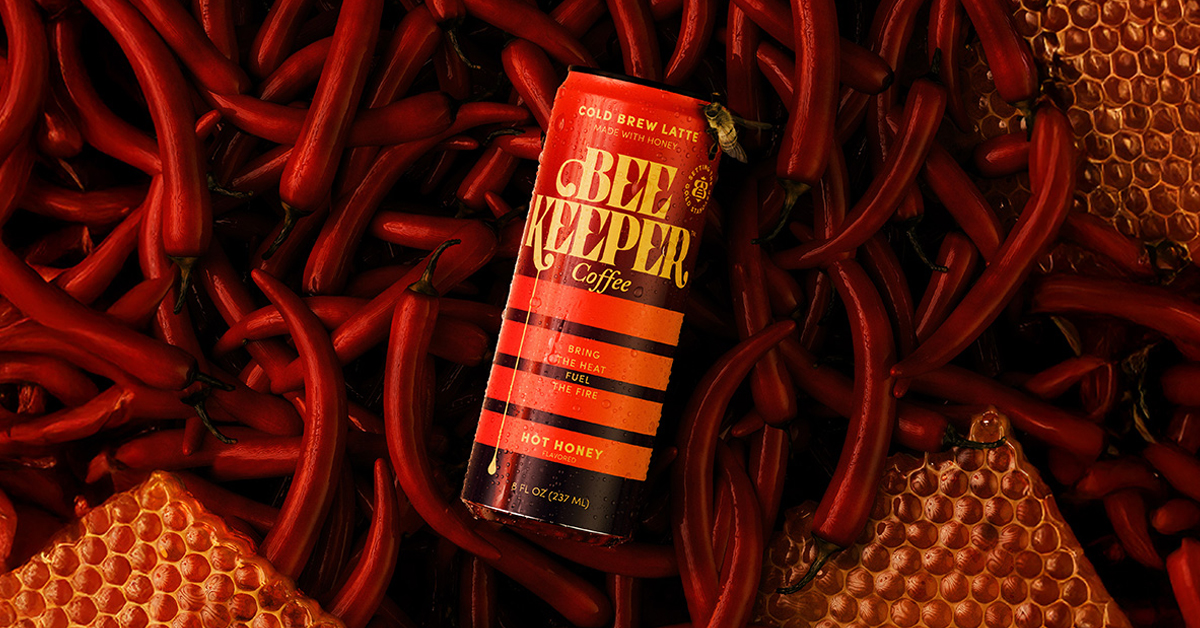 Beekeeper Coffee produces a line of canned cold brew coffee lattes made with organic honey. Its latest offering is a chili extract-added Hot Honey flavor, using reduced fat milk and organic cane sugar for additional sweetness. The beverage packs 125 mg of caffeine, 90 calories, 5 grams of protein and 11 grams of sugar into an 8 oz. can, with callouts for its use of “Pure Honey” and arabica coffee beans.