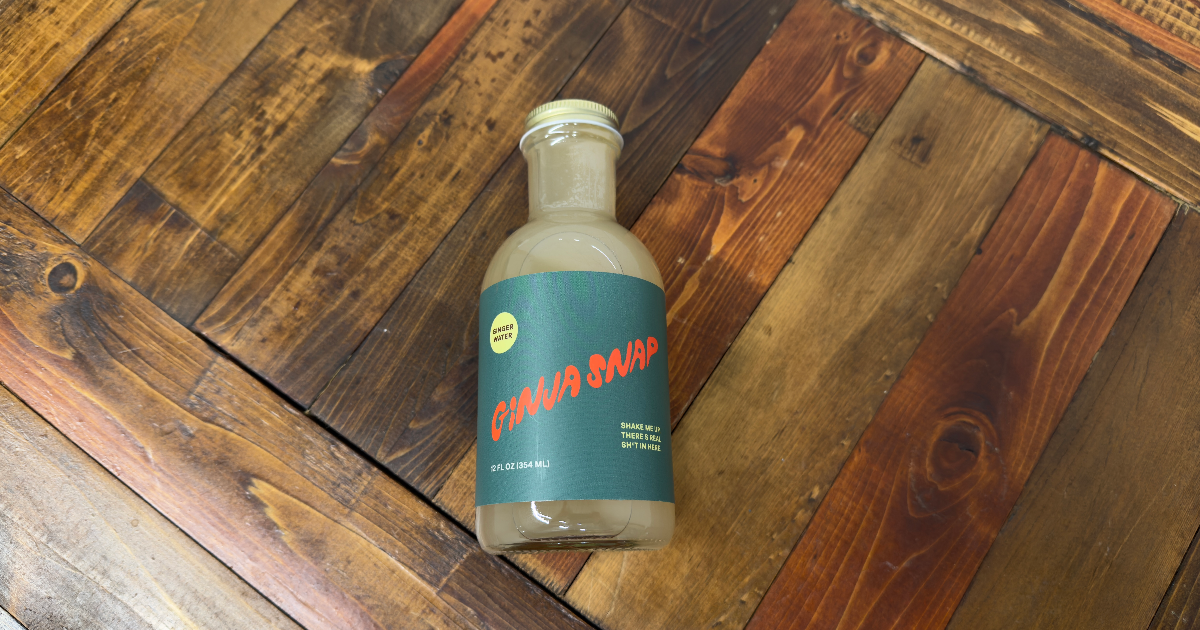 - The packaging is clean, minimalist, and visually distinctive. The green label, red Ginja Snap logo, and playful messaging (“shake me up there’s real sh*t in here”) give the bottle shelf appeal while keeping the overall presentation uncluttered.